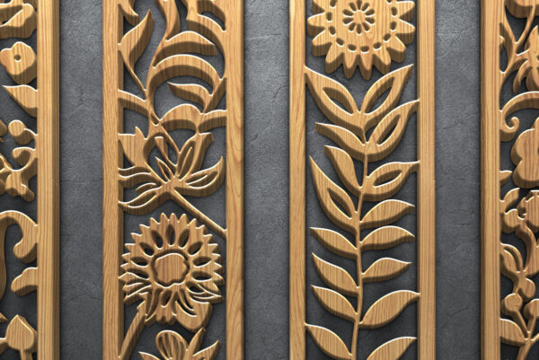 Intra απο ξύλο plywood Χρώμα wenge 3mm-4mm πάχος – Πακέτο με φλοράλ λωρίδα με λέιζερ Δίασταση 3200×7200 cm INTRAFABR-115233403