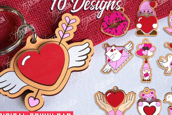 Intra απο ξύλο plywood 3mm-4mm πάχος – Πακέτο μπρελόκ για την ημέρα του Αγίου Βαλεντίνου | CNC Δίασταση 5×5 cm INTRAFABR-108905342