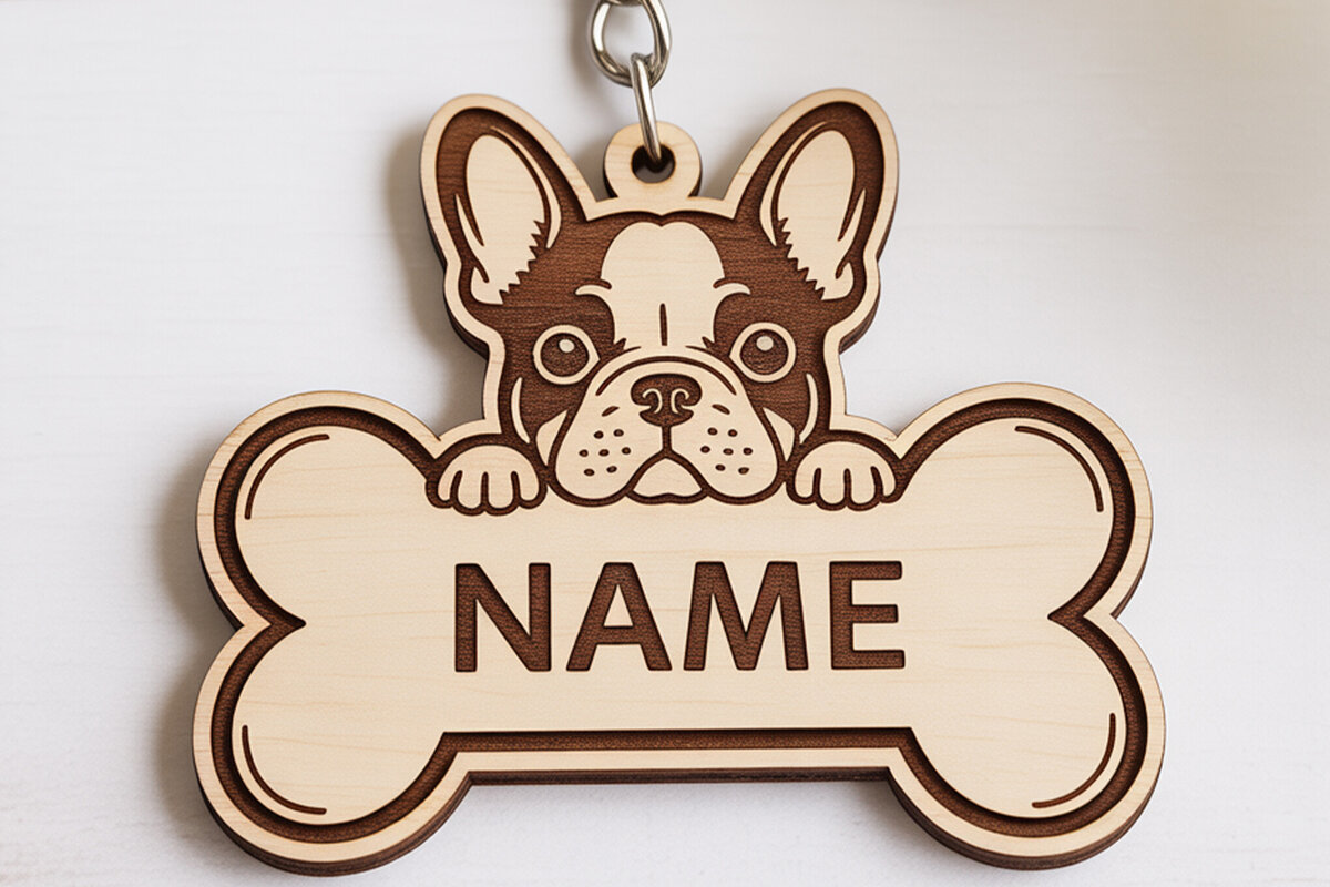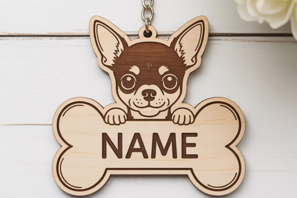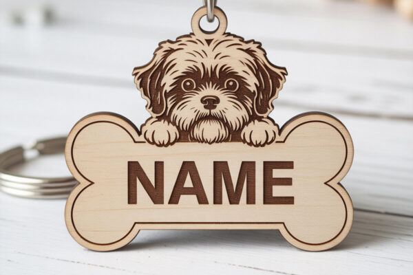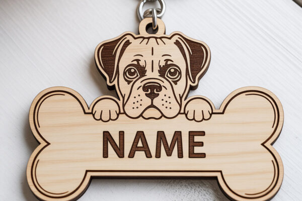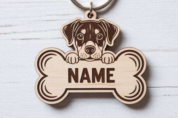 Intra απο ξύλο plywood 3mm-4mm πάχος – Πακέτο μπρελόκ με ετικέτα ονόματος σκύλου Δίασταση 5×5 cm INTRAFABR-121423522