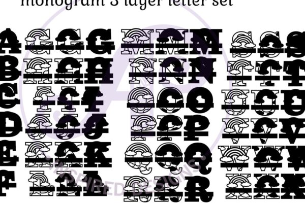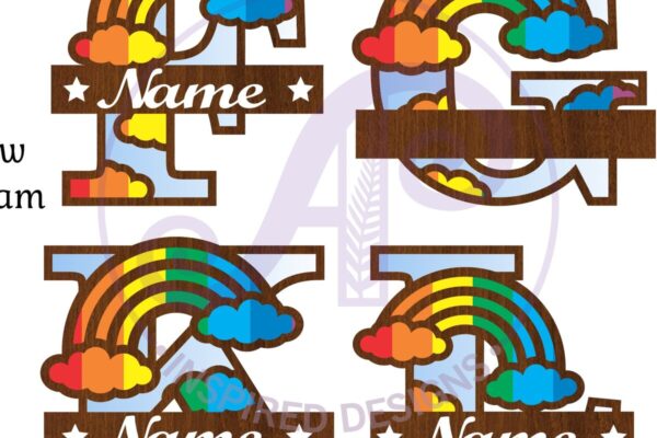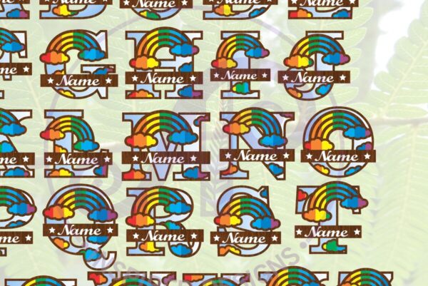 Intra απο ξύλο plywood 3mm-4mm πάχος – Πακέτο σετ γραμμάτων Rainbow Monogram Δίασταση 20×20 cm INTRAFABR-70080023