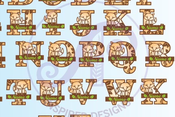Intra απο ξύλο plywood 3mm-4mm πάχος – Πακέτο σετ γραμμάτων Fox Monogram Δίασταση 30×20 cm INTRAFABR-69918962
