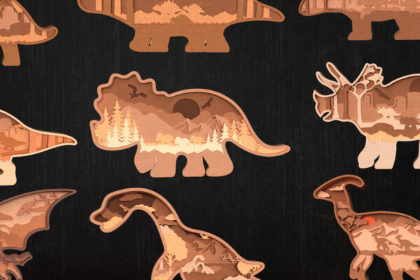 Intra απο ξύλο plywood Χρώμα wenge 3mm-4mm πάχος – Πακέτο 3D Layered Dinosaur Δίασταση 6×6 cm INTRAFABR-90039560
