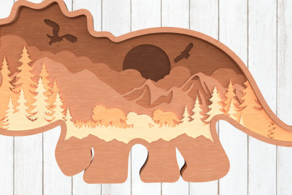 Intra απο ξύλο plywood 3mm-4mm πάχος – Πακέτο 3D Layered Dinosaur Δίασταση 6×6 cm INTRAFABR-119557909