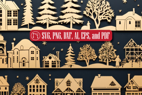 Intra απο ξύλο plywood 3mm-4mm πάχος – Πακέτο Cricut Christmas Village Δίασταση 4×4 cm INTRAFABR-81558585