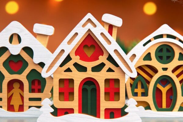 Intra απο ξύλο plywood 3mm-4mm πάχος – Πακέτο Cute Houses | 3D Layered Δίασταση 16×6 cm INTRAFABR-46723788