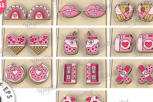 Intra απο ξύλο plywood 3mm-4mm πάχος – Πακέτο LaserCut με σκουλαρίκια για την ημέρα του Αγίου Βαλεντίνου Δίασταση 5×5 cm INTRAFABR-110111414