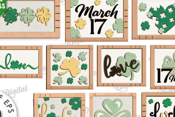 Intra απο ξύλο plywood 3mm-4mm πάχος – Πακέτο LaserCut Mini Signs St. Patrick Δίασταση 40×30 cm INTRAFABR-113928441