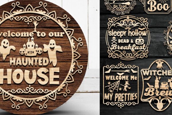 Intra απο ξύλο plywood 3mm-4mm πάχος – Πακέτο vintage Halloween Sign |V-03 Δίασταση 40×30 cm INTRAFABR-38123047
