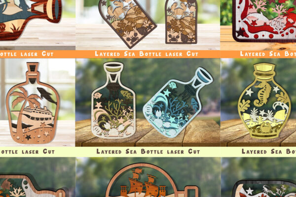 Intra απο ξύλο plywood 3mm-4mm πάχος – ΠακέτοBottle Sea Δίασταση 20×20 cm INTRAFABR-111847666