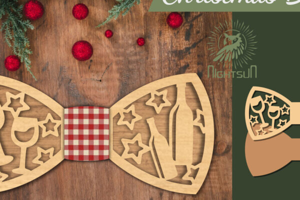 Intra απο ξύλο plywood 3mm-4mm πάχος – Παπιγιόν με κομμένο λέιζερ ποτήρι και μπουκάλι κρασιού Δίασταση 20×20 cm INTRAFABR-112552980