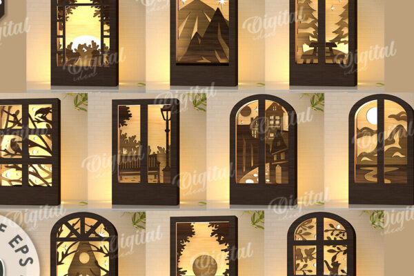 Intra απο ξύλο plywood 3mm-4mm πάχος – Παράθυρο Led Nightlights Πακέτο κοπής με λέιζερ Δίασταση 20×20 cm INTRAFABR-107963362