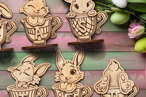 Intra απο ξύλο plywood 3mm-4mm πάχος – Πασχαλινά κουνελάκια τσαγιού| Πασχαλινή διακόσμηση Δίασταση 15×15 cm INTRAFABR-118858419