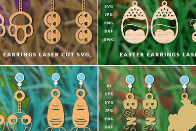 Intra απο ξύλο plywood 3mm-4mm πάχος – Πασχαλινά σκουλαρίκια Laser Cut Bundle Δίασταση 3×3 cm INTRAFABR-64119589