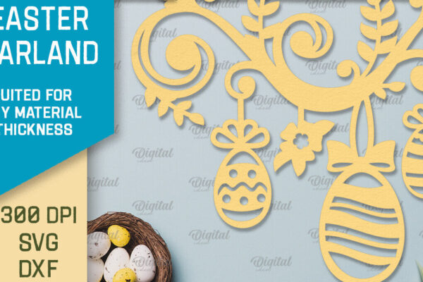 Intra απο ξύλο plywood 3mm-4mm πάχος – Πασχαλινή γιρλάντα. Πασχαλινό ντεκόρ Χαρτί κοπής Δίασταση 15×15 cm INTRAFABR-92469544