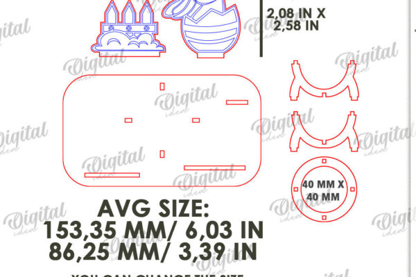 Πασχαλινό Αυγό Βάση LaserCut. 3D Αυγοθήκη Πρόκειται για ψηφιακό σχεδίου, ιδανικό για κοπή με ή plotter. Κατασκευασμένο απο Ξύλο από plywood [3mm ή 4mm], κομμένο με ακρίβεια στην βιοτεχνία Intrahome . Το φυσικό ξύλο προσφέρει μια κομψή, αυθεντική υφή και μπορεί εύκολα να βαφτεί ή να διακοσμηθεί σύμφωνα με το προσωπικό σας γούστο. Ελληνική παραγωγή – Κατασκευάζεται στην Ελλάδα με προσοχή στη λεπτομέρεια και υψηλές προδιαγραφές ποιότητας. ✔️ Υλικό: Plywood υψηλής ποιότητας ✔️ Διατίθεται σε πάχος 3mm ή 4mm ✔️ Ελαφρύ, ανθεκτικό και εύκολο στη χρήση ✔️ Ιδανικό για βάψιμο, χάραξη, κόλληση και χειροτεχνίες ✔️ Κατάλληλο για μπομπονιέρες, διακόσμηση, δώρα και DIY projects ✅ Εγγύηση 2 ετών – Σε περίπτωση σπασίματος, η αντικατάσταση γίνεται άμεσα, χάρη στην τοπική ελληνική παραγωγή μας. Ιδανικό για δημιουργικούς ανθρώπους που αγαπούν το DIY. Μπορεί να γίνει ξεχωριστό δώρο με προσωπικό χαρακτήρα. Φέρνει “χειροποίητη” αισθητική στη διακόσμηση. -files- Ελληνική χειροποίητη παραγωγή → στηρίζετε τοπικούς δημιουργούς. Κάθε κομμάτι έχει τη δική του φυσική ξύλινη υφή (μοναδικότητα). Δυνατότητα ειδικής παραγγελίας (άλλα μεγέθη / σχήματα). Άμεση ανταπόκριση & υποστήριξη. Εγγύηση αντικατάστασης (ήδη το έχεις). Μπορεί να μετατραπεί σε προσωποποιημένο αντικείμενο με χάραξη ή χρώμα. -files– Μη τοξικό υλικό → ασφαλές για παιδιά (με επίβλεψη). Ελαφρύ και εύκολο στη μεταφορά. Συσκευάζεται με προστασία για να φτάνει πάντα άθικτο. -files–files- Ιδανικό για event planners, καταστήματα ειδών δώρου, κατασκευαστές . Διατίθεται σε χονδρική με ειδικές τιμές & εκπτώσεις σε ποσότητα. Ανοιχτές Αποχρώσεις