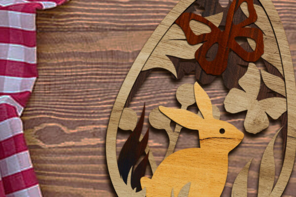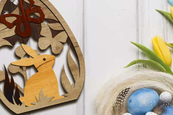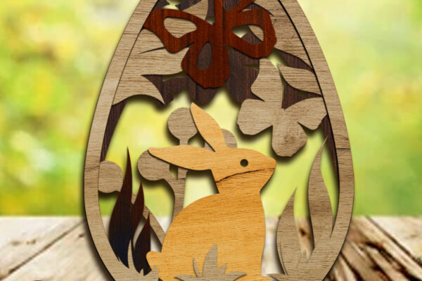 Intra απο ξύλο plywood 3mm-4mm πάχος – Πασχαλινό αυγό με κουνέλι, πρότυπο ντεκόρ Δίασταση 4×5 cm INTRAFABR-89389292