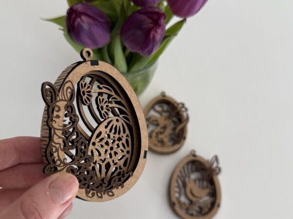 Intra απο ξύλο plywood Χρώμα wenge 3mm-4mm πάχος – Πασχαλινό αυγό με λαγουδάκι Δίασταση 5×3 cm INTRAFABR-89850648