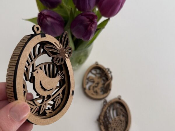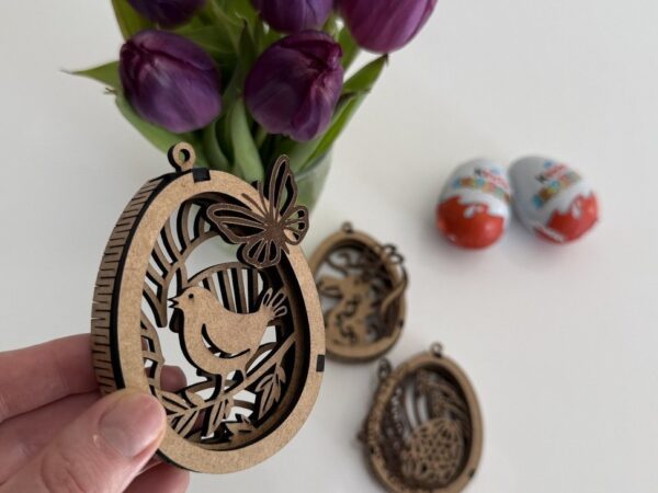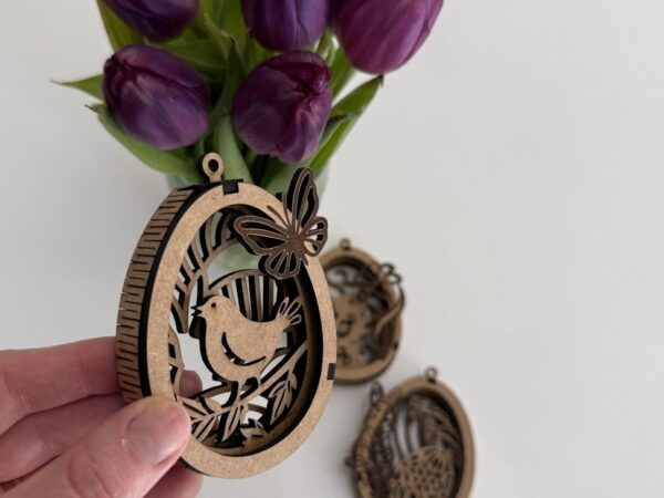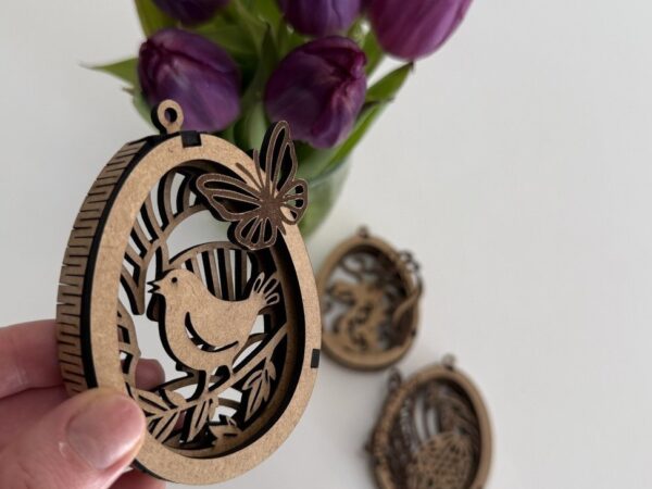 Intra απο ξύλο plywood Χρώμα wenge 3mm-4mm πάχος – Πασχαλινό αυγό με πουλί Δίασταση 5×3 cm INTRAFABR-115695467
