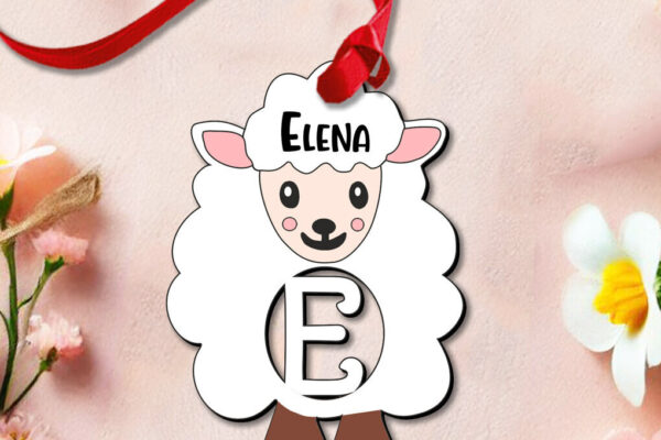 Intra απο ξύλο plywood 3mm-4mm πάχος – Πασχαλινό γράμμα E Αρνί Στολίδι Πρόβατο Δίασταση 6×6 cm INTRAFABR-112720375