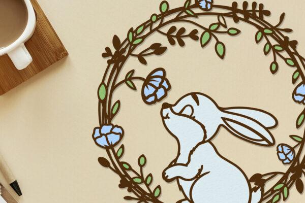 Intra απο ξύλο plywood 3mm-4mm πάχος – Πασχαλινό διακοσμητικό στεφάνι με λαγουδάκι Δίασταση 2×14 cm INTRAFABR-115533708