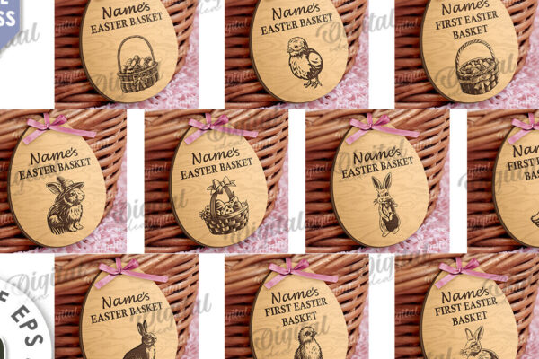 Intra απο ξύλο plywood 3mm-4mm πάχος – Πασχαλινό καλάθι Ετικέτες LaserCut Bundle Δίασταση 15×15 cm INTRAFABR-115232354