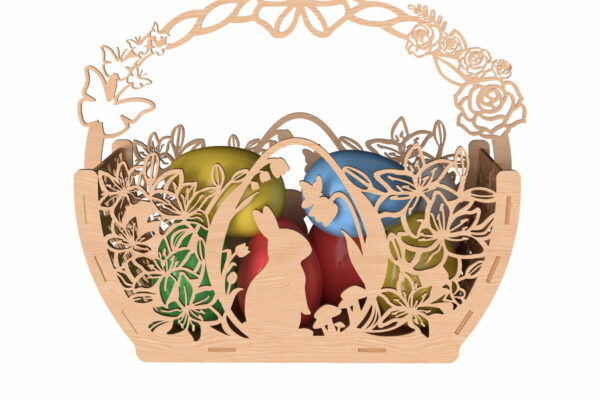 Intra απο ξύλο plywood 3mm-4mm πάχος – Πασχαλινό καλάθι λουλουδιών με λέιζερ λαγουδάκι Δίασταση 6×6 cm INTRAFABR-116005921