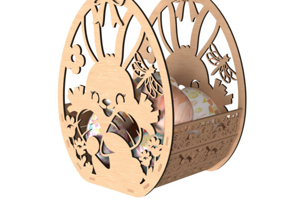 Intra απο ξύλο plywood 3mm-4mm πάχος – Πασχαλινό καλάθι με χαμογελαστό λαγουδάκι Δίασταση 20×20 cm INTRAFABR-116206895