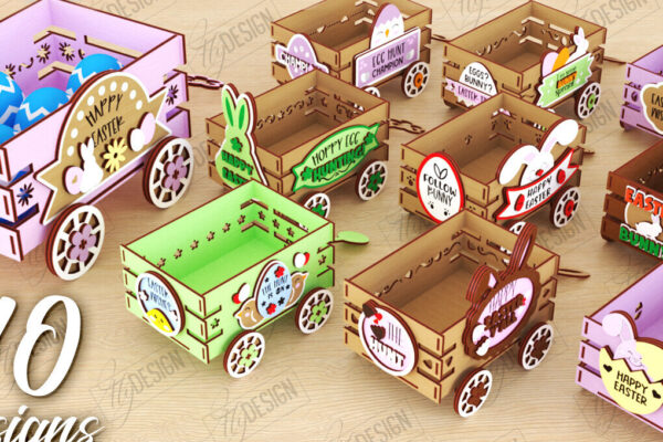 Intra απο ξύλο plywood 3mm-4mm πάχος – Πασχαλινό καρότσι με αυγά | Πασχαλινή αυγοθήκη Δίασταση 15×15 cm INTRAFABR-118204967