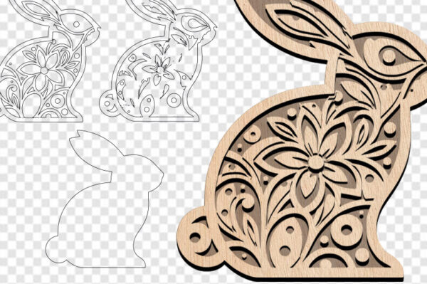 Intra απο ξύλο plywood 3mm-4mm πάχος – Πασχαλινό κουνελάκι με λέιζερ Δίασταση 30×20 cm INTRAFABR-114534979