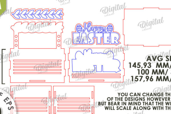 Πασχαλινό κουτί καραμέλας LaserCut. Πασχαλινό σχέδιο Πρόκειται για ψηφιακό σχεδίου, ιδανικό για κοπή με ή plotter. Κατασκευασμένο απο Ξύλο από plywood [3mm ή 4mm], κομμένο με ακρίβεια στην βιοτεχνία Intrahome . Το φυσικό ξύλο προσφέρει μια κομψή, αυθεντική υφή και μπορεί εύκολα να βαφτεί ή να διακοσμηθεί σύμφωνα με το προσωπικό σας γούστο. Ελληνική παραγωγή – Κατασκευάζεται στην Ελλάδα με προσοχή στη λεπτομέρεια και υψηλές προδιαγραφές ποιότητας. ✔️ Υλικό: Plywood υψηλής ποιότητας ✔️ Διατίθεται σε πάχος 3mm ή 4mm ✔️ Ελαφρύ, ανθεκτικό και εύκολο στη χρήση ✔️ Ιδανικό για βάψιμο, χάραξη, κόλληση και χειροτεχνίες ✔️ Κατάλληλο για μπομπονιέρες, διακόσμηση, δώρα και DIY projects ✅ Εγγύηση 2 ετών – Σε περίπτωση σπασίματος, η αντικατάσταση γίνεται άμεσα, χάρη στην τοπική ελληνική παραγωγή μας. Ιδανικό για δημιουργικούς ανθρώπους που αγαπούν το DIY. Μπορεί να γίνει ξεχωριστό δώρο με προσωπικό χαρακτήρα. Φέρνει “χειροποίητη” αισθητική στη διακόσμηση. -files- Ελληνική χειροποίητη παραγωγή → στηρίζετε τοπικούς δημιουργούς. Κάθε κομμάτι έχει τη δική του φυσική ξύλινη υφή (μοναδικότητα). Δυνατότητα ειδικής παραγγελίας (άλλα μεγέθη / σχήματα). Άμεση ανταπόκριση & υποστήριξη. Εγγύηση αντικατάστασης (ήδη το έχεις). Μπορεί να μετατραπεί σε προσωποποιημένο αντικείμενο με χάραξη ή χρώμα. -files– Μη τοξικό υλικό → ασφαλές για παιδιά (με επίβλεψη). Ελαφρύ και εύκολο στη μεταφορά. Συσκευάζεται με προστασία για να φτάνει πάντα άθικτο. -files–files- Ιδανικό για event planners, καταστήματα ειδών δώρου, κατασκευαστές . Διατίθεται σε χονδρική με ειδικές τιμές & εκπτώσεις σε ποσότητα. Ανοιχτές Αποχρώσεις