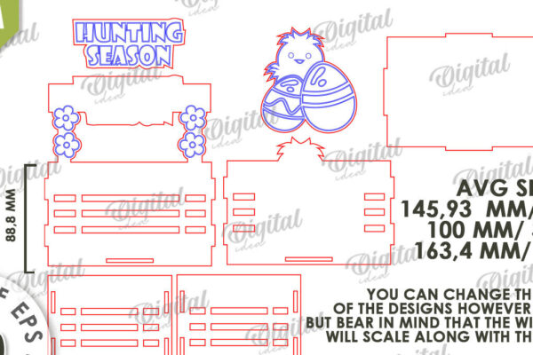 Πασχαλινό κουτί καραμέλας LaserCut. Πασχαλινό σχέδιο Πρόκειται για ψηφιακό σχεδίου, ιδανικό για κοπή με ή plotter. Κατασκευασμένο απο Ξύλο από plywood [3mm ή 4mm], κομμένο με ακρίβεια στην βιοτεχνία Intrahome . Το φυσικό ξύλο προσφέρει μια κομψή, αυθεντική υφή και μπορεί εύκολα να βαφτεί ή να διακοσμηθεί σύμφωνα με το προσωπικό σας γούστο. Ελληνική παραγωγή – Κατασκευάζεται στην Ελλάδα με προσοχή στη λεπτομέρεια και υψηλές προδιαγραφές ποιότητας. ✔️ Υλικό: Plywood υψηλής ποιότητας ✔️ Διατίθεται σε πάχος 3mm ή 4mm ✔️ Ελαφρύ, ανθεκτικό και εύκολο στη χρήση ✔️ Ιδανικό για βάψιμο, χάραξη, κόλληση και χειροτεχνίες ✔️ Κατάλληλο για μπομπονιέρες, διακόσμηση, δώρα και DIY projects ✅ Εγγύηση 2 ετών – Σε περίπτωση σπασίματος, η αντικατάσταση γίνεται άμεσα, χάρη στην τοπική ελληνική παραγωγή μας. Ιδανικό για δημιουργικούς ανθρώπους που αγαπούν το DIY. Μπορεί να γίνει ξεχωριστό δώρο με προσωπικό χαρακτήρα. Φέρνει “χειροποίητη” αισθητική στη διακόσμηση. -files- Ελληνική χειροποίητη παραγωγή → στηρίζετε τοπικούς δημιουργούς. Κάθε κομμάτι έχει τη δική του φυσική ξύλινη υφή (μοναδικότητα). Δυνατότητα ειδικής παραγγελίας (άλλα μεγέθη / σχήματα). Άμεση ανταπόκριση & υποστήριξη. Εγγύηση αντικατάστασης (ήδη το έχεις). Μπορεί να μετατραπεί σε προσωποποιημένο αντικείμενο με χάραξη ή χρώμα. -files– Μη τοξικό υλικό → ασφαλές για παιδιά (με επίβλεψη). Ελαφρύ και εύκολο στη μεταφορά. Συσκευάζεται με προστασία για να φτάνει πάντα άθικτο. -files–files- Ιδανικό για event planners, καταστήματα ειδών δώρου, κατασκευαστές . Διατίθεται σε χονδρική με ειδικές τιμές & εκπτώσεις σε ποσότητα. Ανοιχτές Αποχρώσεις