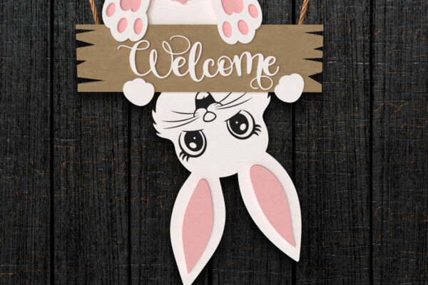 Intra απο ξύλο plywood 3mm-4mm πάχος – Πασχαλινό κρεμασμένο λαγουδάκι καλωσορίσματος Δίασταση 30×20 cm INTRAFABR-113924185