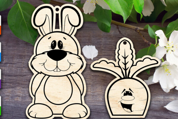 Intra απο ξύλο plywood 3mm-4mm πάχος – Πασχαλινό λαγουδάκι και καρότο Δίασταση 15×15 cm INTRAFABR-62154199