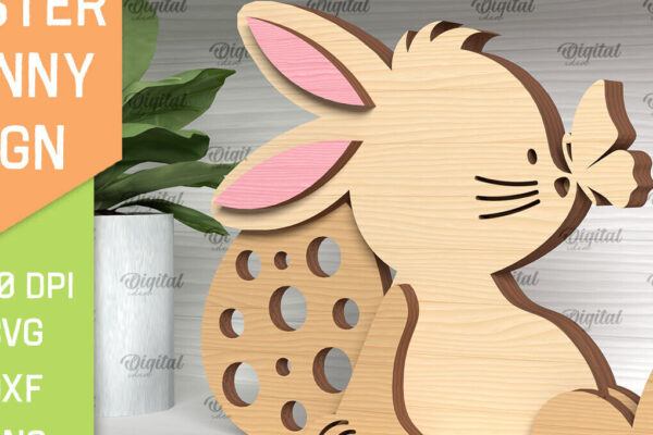 Intra απο ξύλο plywood 3mm-4mm πάχος – Πασχαλινό λαγουδάκι . Τρισδιάστατη Δίασταση 15×15 cm INTRAFABR-91365442