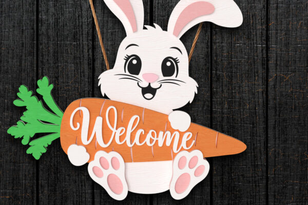 Intra απο ξύλο plywood 3mm-4mm πάχος – Πασχαλινό λαγουδάκι καλωσορίσματος καρότο σημάδι Δίασταση 30×20 cm INTRAFABR-113924261
