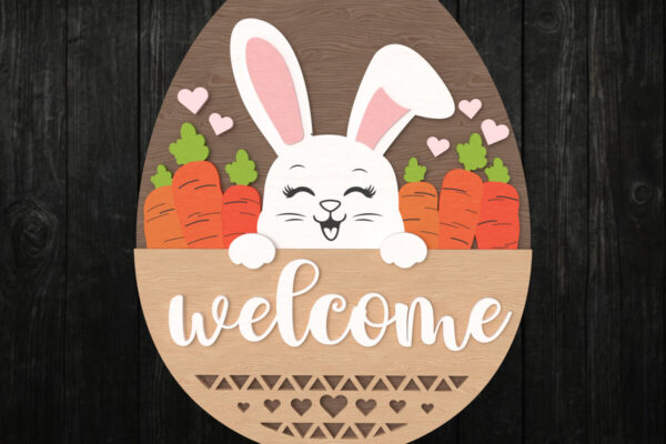 Intra απο ξύλο plywood 3mm-4mm πάχος – Πασχαλινό λαγουδάκι καλωσορίσματος Δίασταση 30×20 cm INTRAFABR-116030849