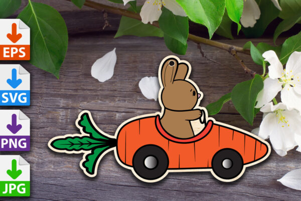 Intra απο ξύλο plywood Χρώμα wenge 3mm-4mm πάχος – Πασχαλινό λαγουδάκι σε καρότο αυτοκίνητο Δίασταση 15×15 cm INTRAFABR-70105036