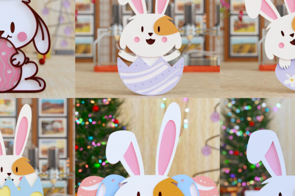 Intra απο ξύλο plywood 3mm-4mm πάχος – Πασχαλινό λαγουδάκι 3D Laser Cut BUNDLE Δίασταση 20×25 cm INTRAFABR-93628648