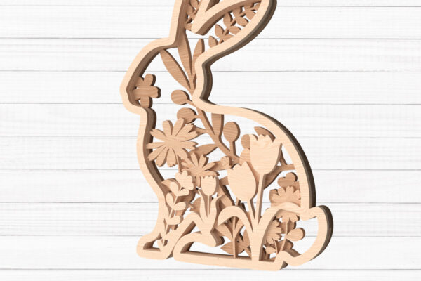 Intra απο ξύλο plywood 3mm-4mm πάχος – Πασχαλινό λουλουδάτο λαγουδάκι με Δίασταση 30×20 cm INTRAFABR-113692183