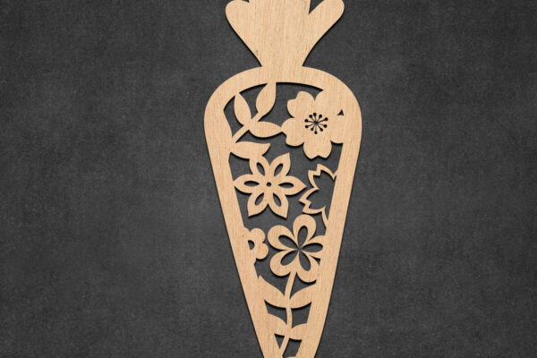 Intra απο ξύλο plywood 3mm-4mm πάχος – Πασχαλινό λουλουδάτο καρότο με λέιζερ Δίασταση 30×20 cm INTRAFABR-115887910