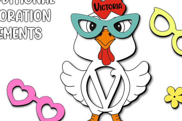 Intra απο ξύλο plywood 3mm-4mm πάχος – Πασχαλινό Chicken Letter V Όνομα καλαθιού Δίασταση 6×6 cm INTRAFABR-113999230