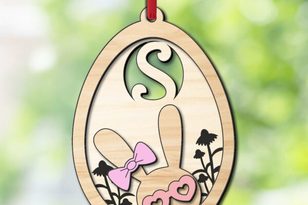 Intra απο ξύλο plywood 3mm-4mm πάχος – Πασχαλινό Letter S Bunny Egg Basket Tag Δίασταση 6×6 cm INTRAFABR-118820912