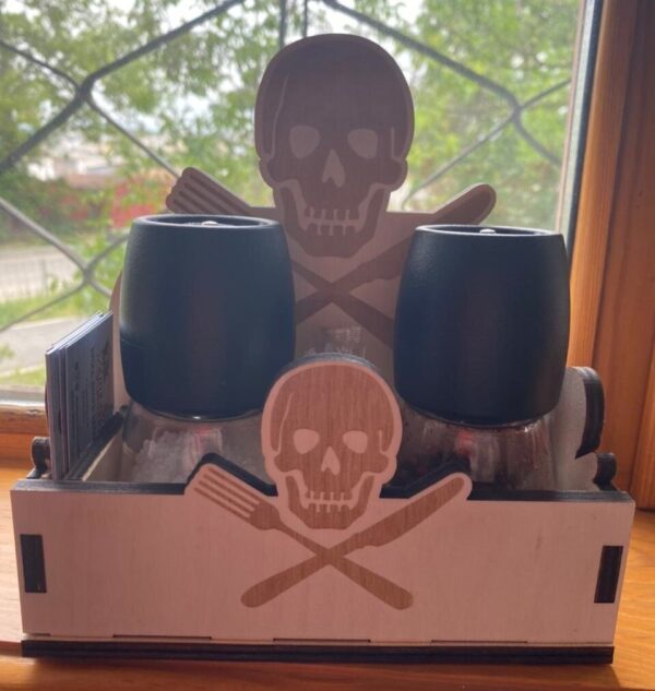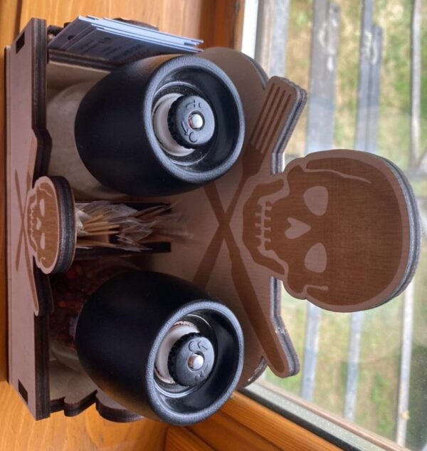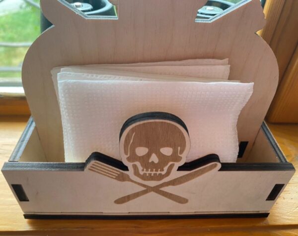 Intra απο ξύλο plywood 3mm-4mm πάχος – Πειρατική θήκη χαρτοπετσέτας με σέικερ για αλάτι και πιπέρι Δίασταση 30×30 cm Intraeaxys-qommj35o