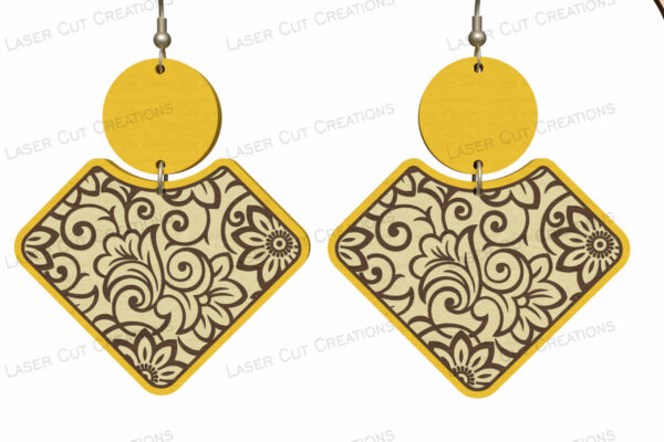 Intra απο ξύλο plywood 3mm-4mm πάχος – Περίτεχνα floral διαμαντένια σκουλαρίκια Δίασταση 5×5 cm INTRAFABR-124634244