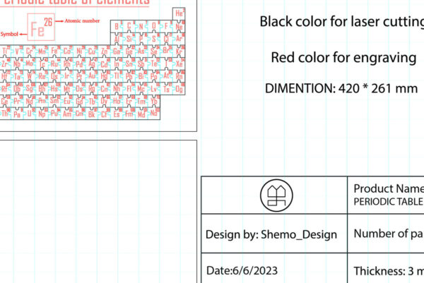 Intra απο ξύλο plywood 3mm-4mm πάχος – Περιοδικός Πίνακας Στοιχείων για Κοπή Δίασταση 45×45 cm INTRAFABR-72190223