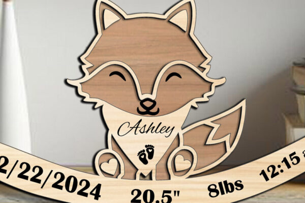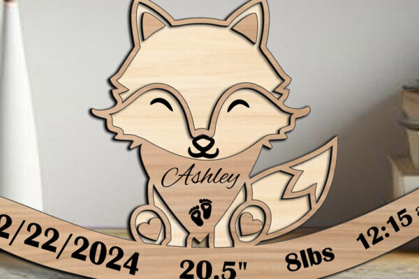 Intra απο ξύλο plywood 3mm-4mm πάχος – Πινακίδα ανακοίνωσης γέννησης νεογέννητου μωρού Fox Δίασταση 20×20 cm INTRAFABR-108875574