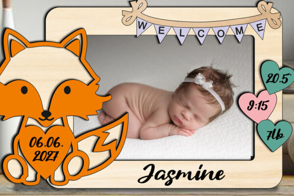 Intra απο ξύλο plywood Χρώμα wenge 3mm-4mm πάχος – Πινακίδα δώρου με κορνίζα λέιζερ μωρών Fox Δίασταση 20×25 cm INTRAFABR-84702733