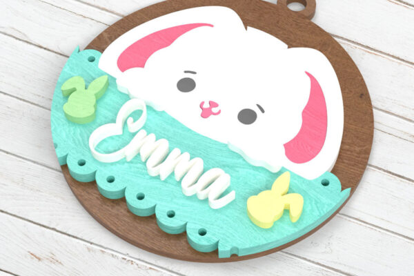 Intra απο ξύλο plywood Χρώμα wenge 3mm-4mm πάχος – Πινακίδα ονόματος Πάσχα λαγουδάκι – με λέιζερ Δίασταση 6×6 cm INTRAFABR-37553591