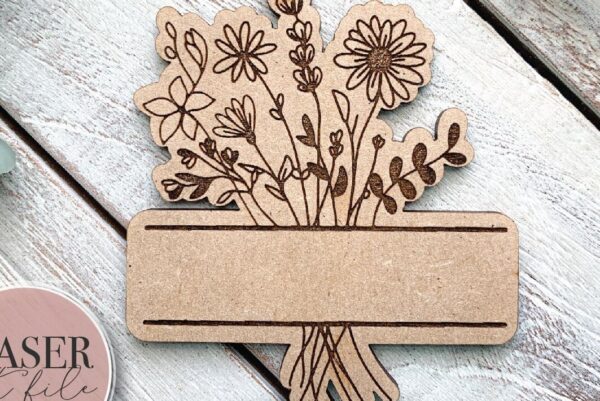 Intra απο ξύλο plywood 3mm-4mm πάχος – Πινακίδα ονόματος μπουκέτο λουλουδιών Δίασταση 6×6 cm INTRAFABR-70852018