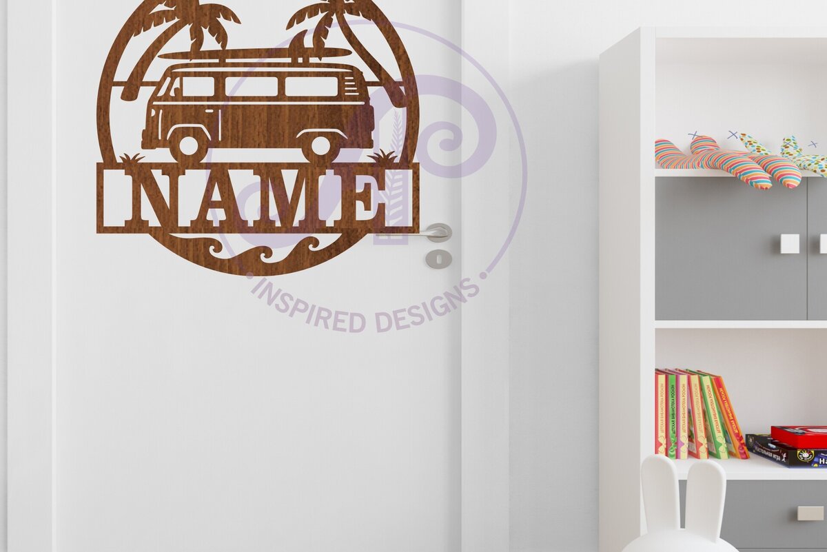Intra απο ξύλο plywood 3mm-4mm πάχος Πινακίδα ονόματος Beach Camper Van με θέμα Δίασταση 6×6 cm INTRAFABR-107459868